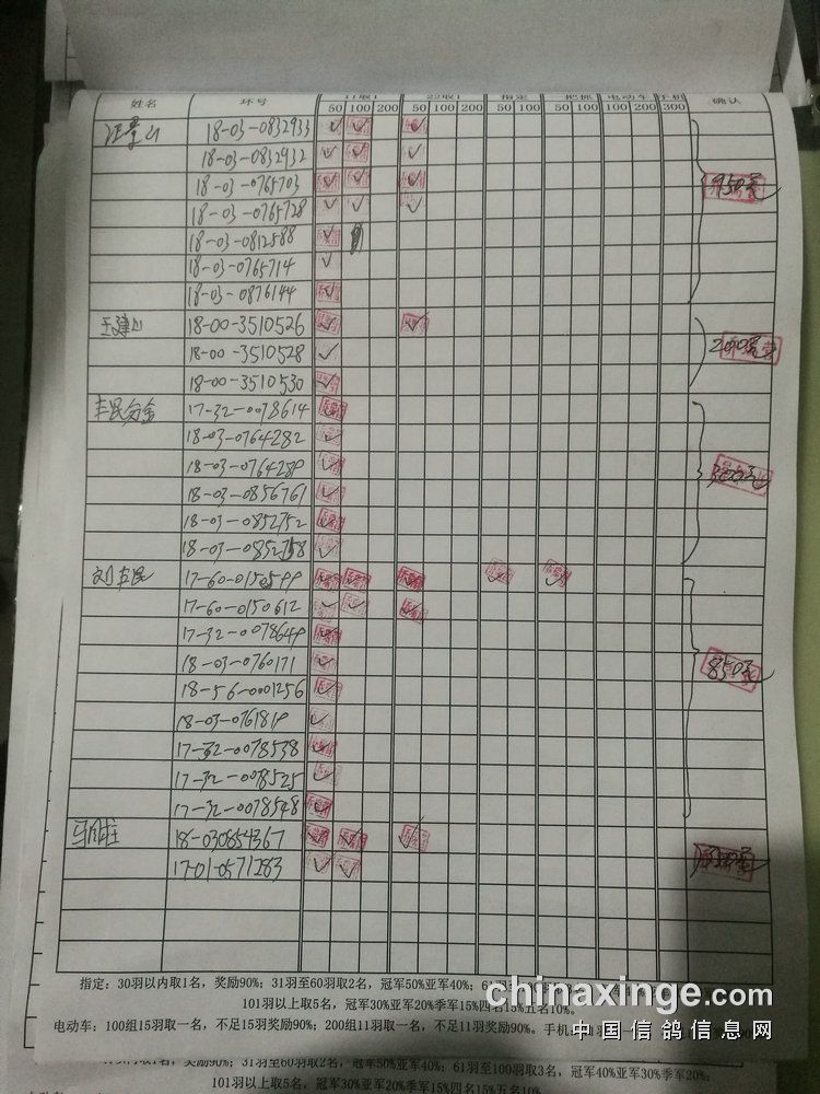 200组:共计24羽,取3名。