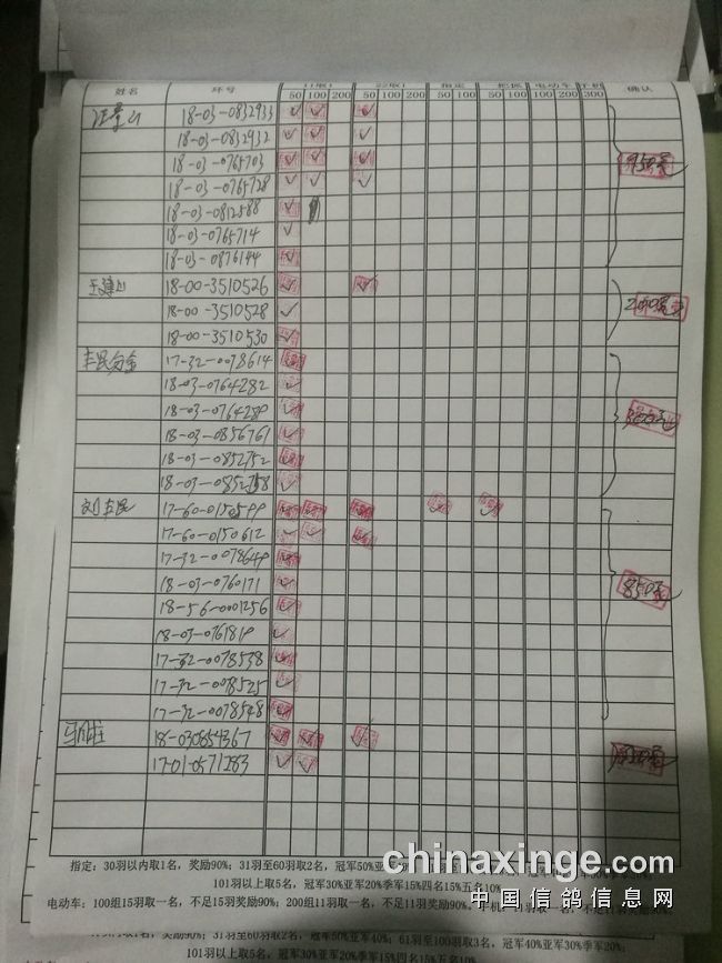 100组:共计47羽,取4名。