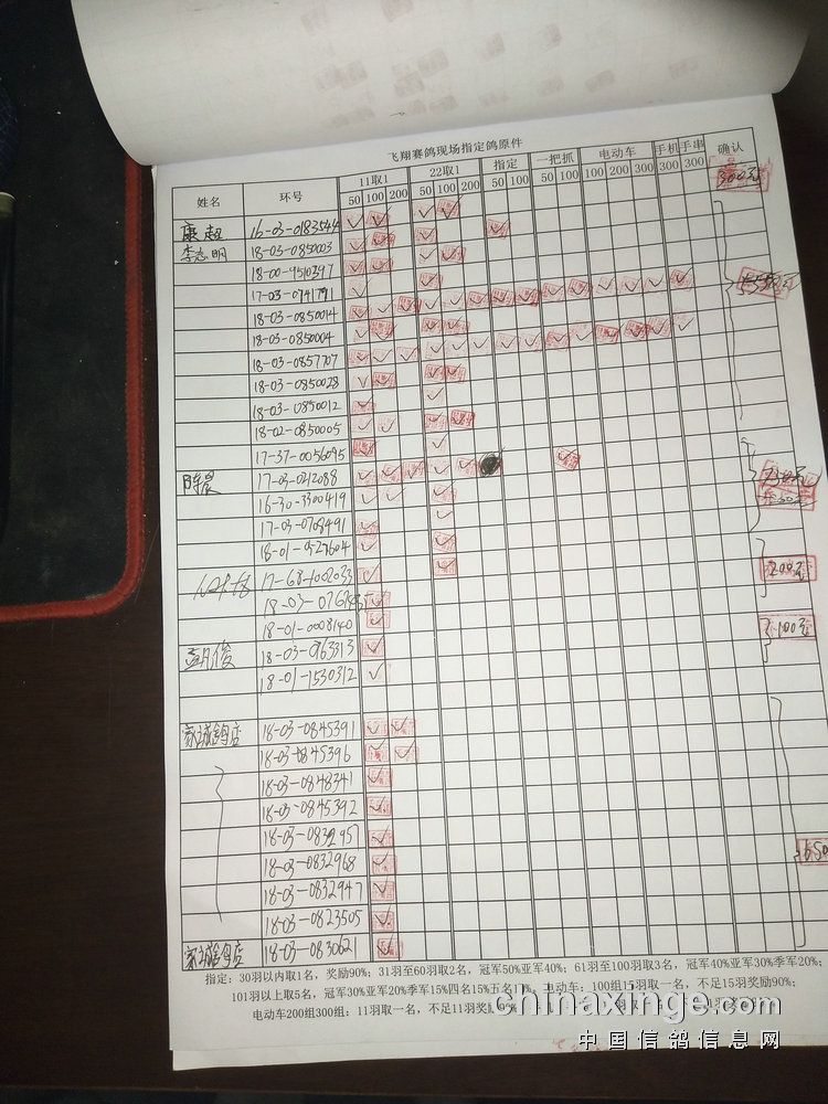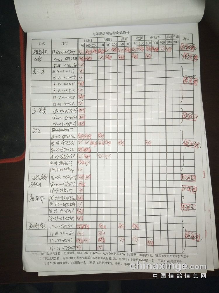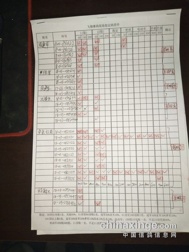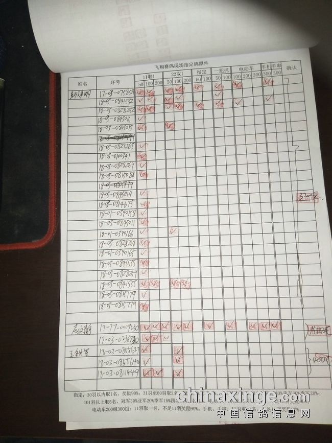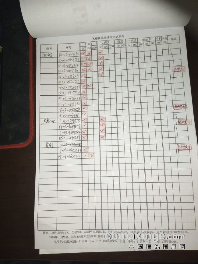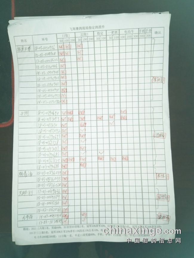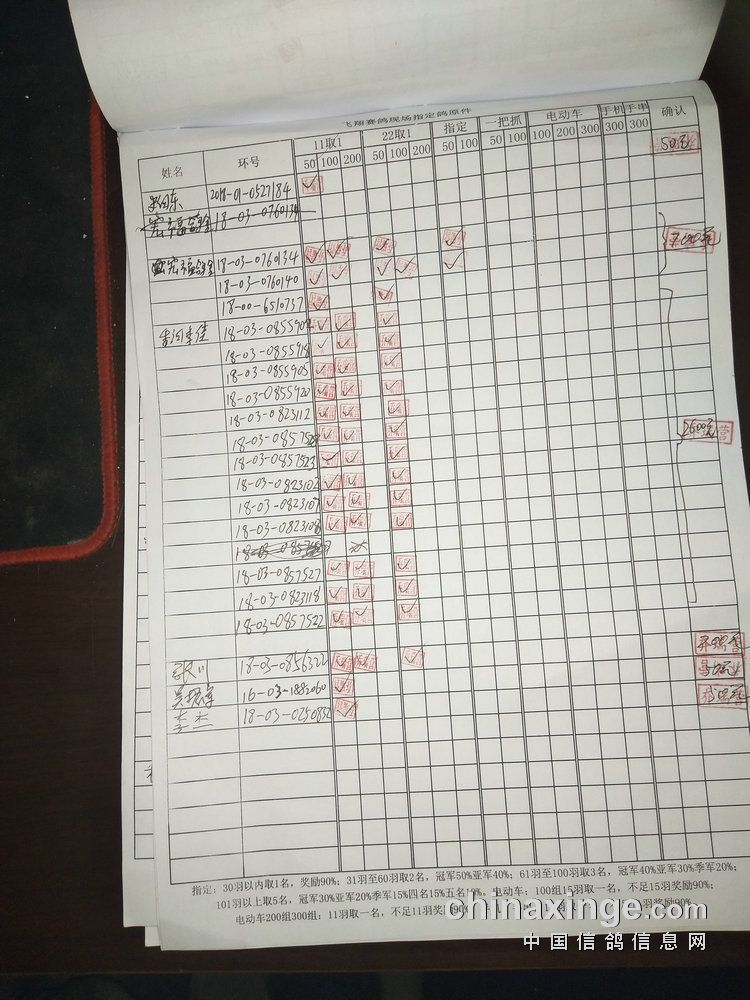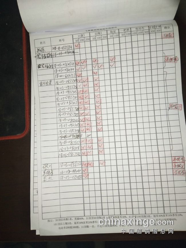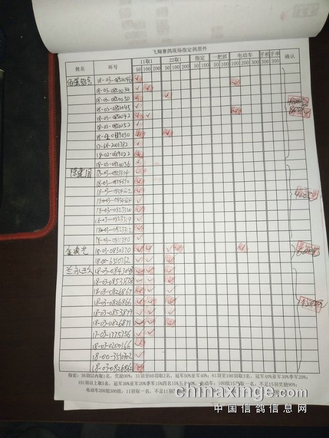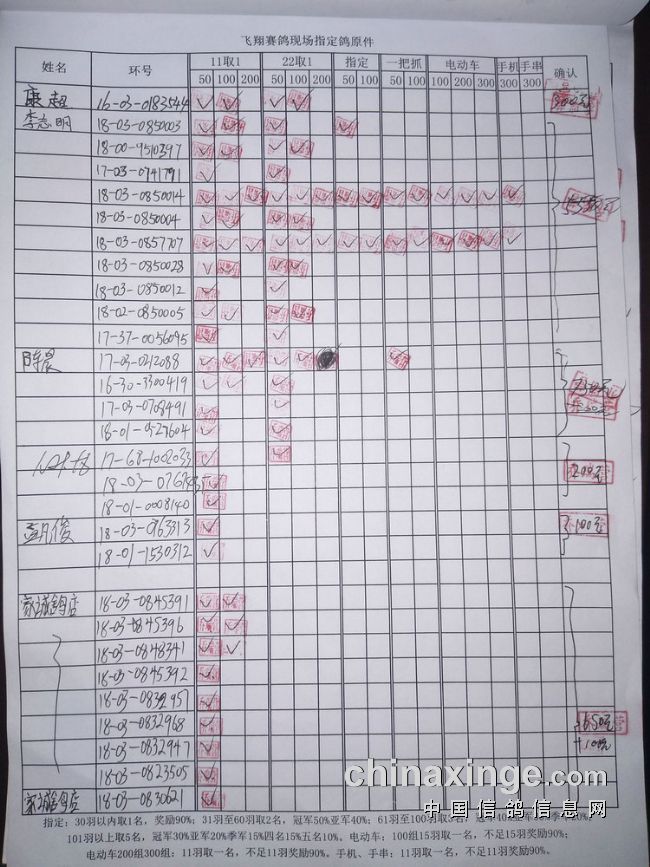 指定鸽:50元组共计61羽取3名
