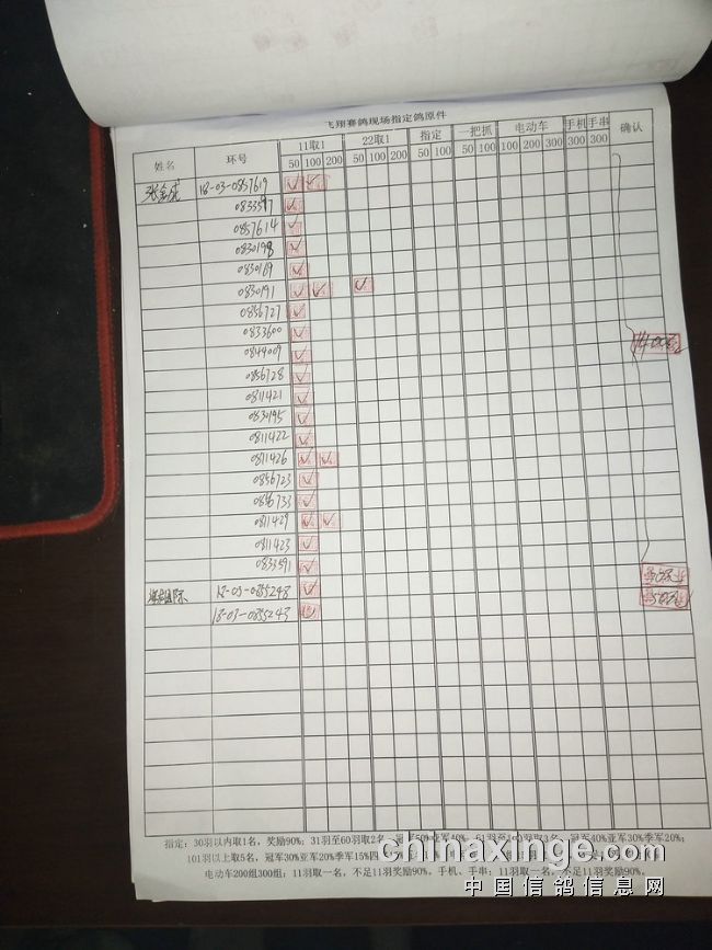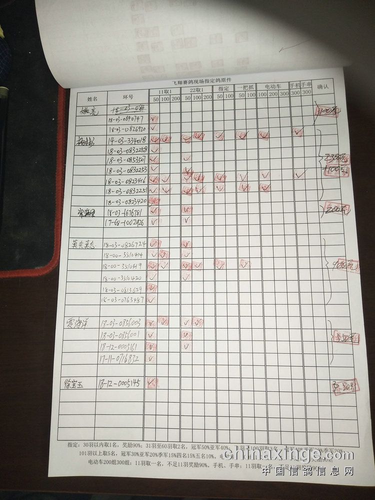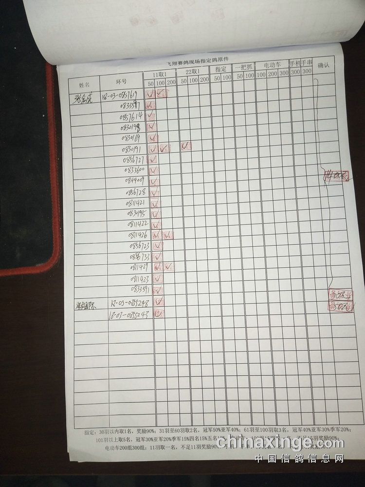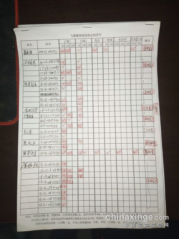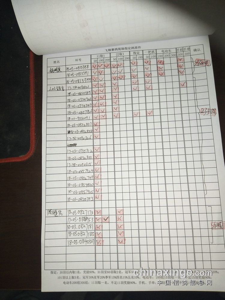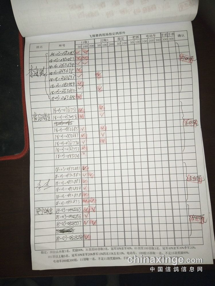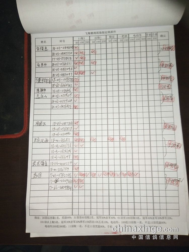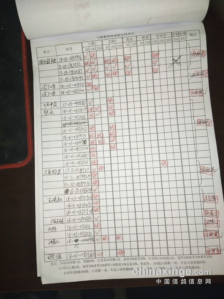 指定鸽:50元组共计61羽取3名