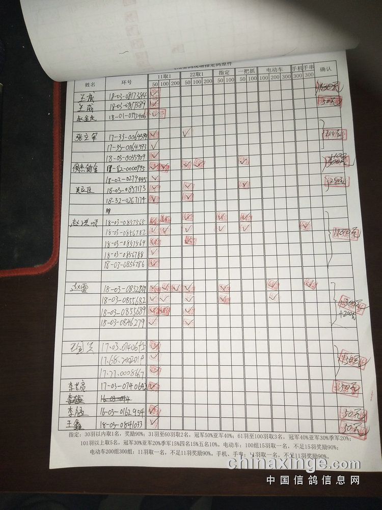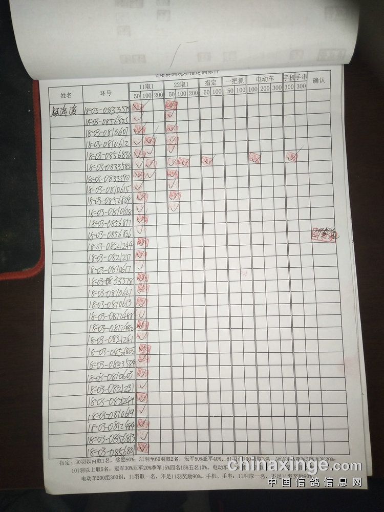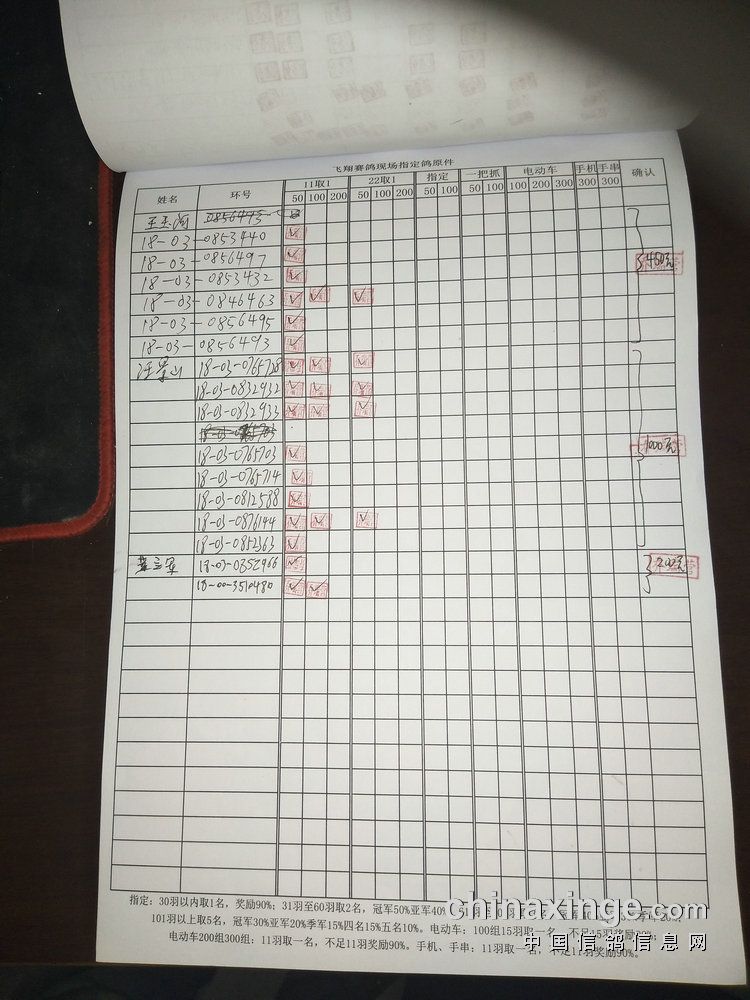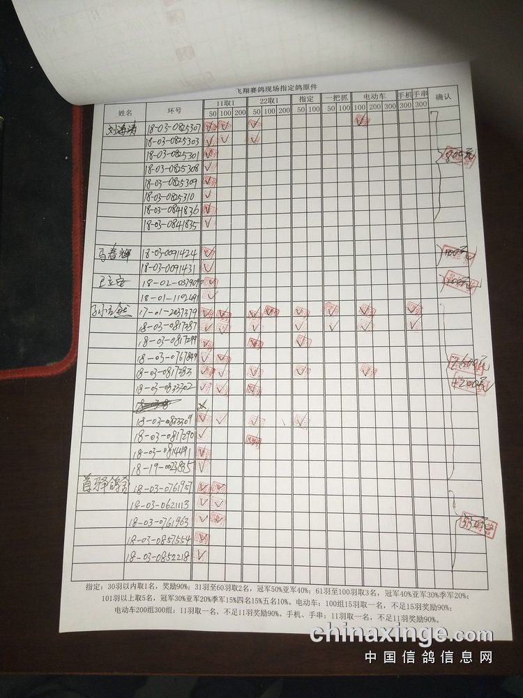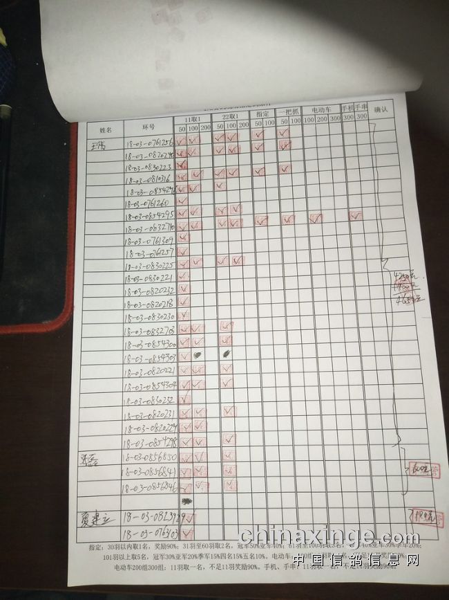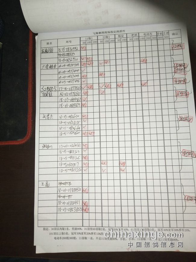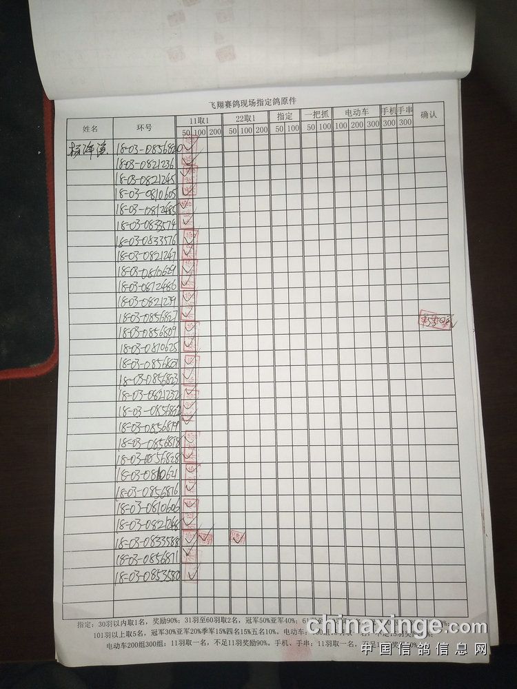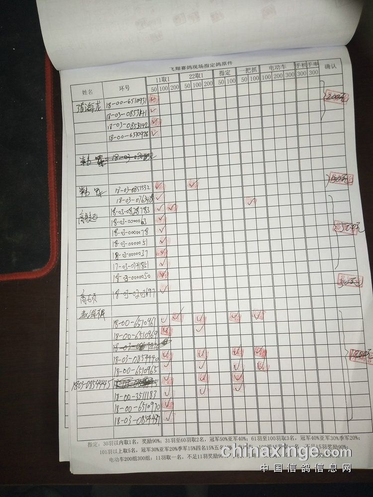 指定鸽:50元组共计61羽取3名