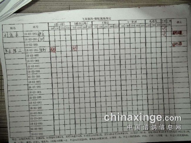飞翔赛鸽505公里特比决赛-特比现场指定原单二
