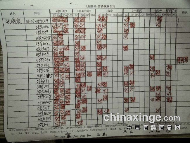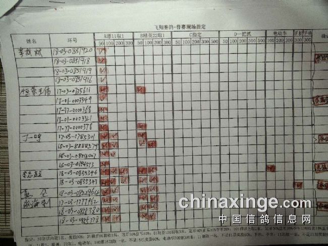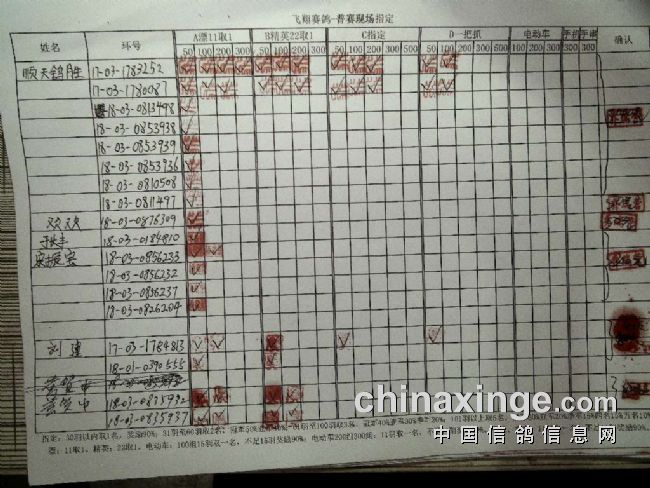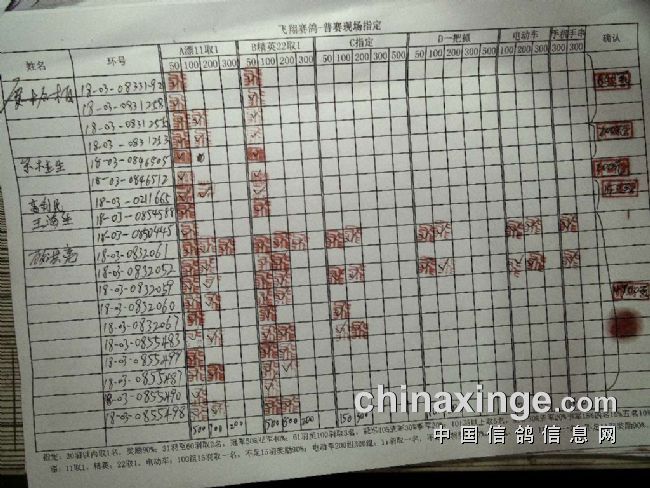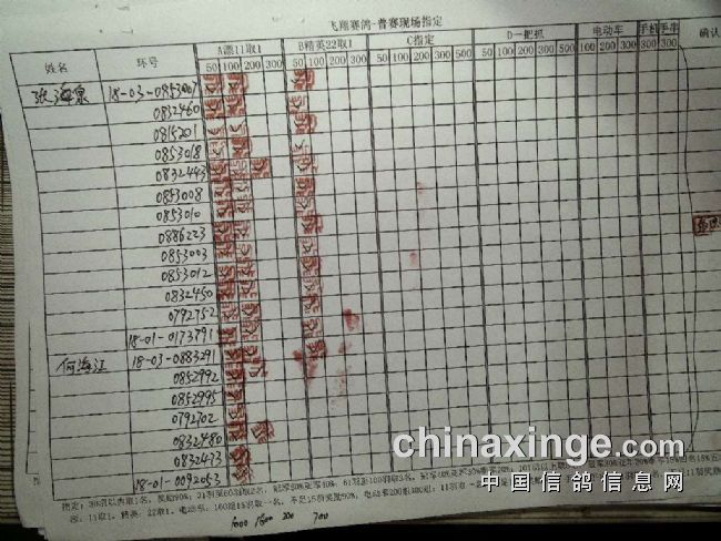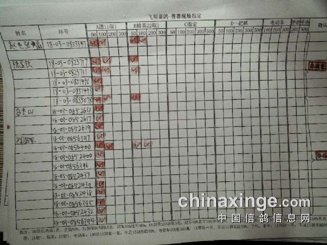飞翔赛鸽505公里特比决赛-普赛现场指定原单二