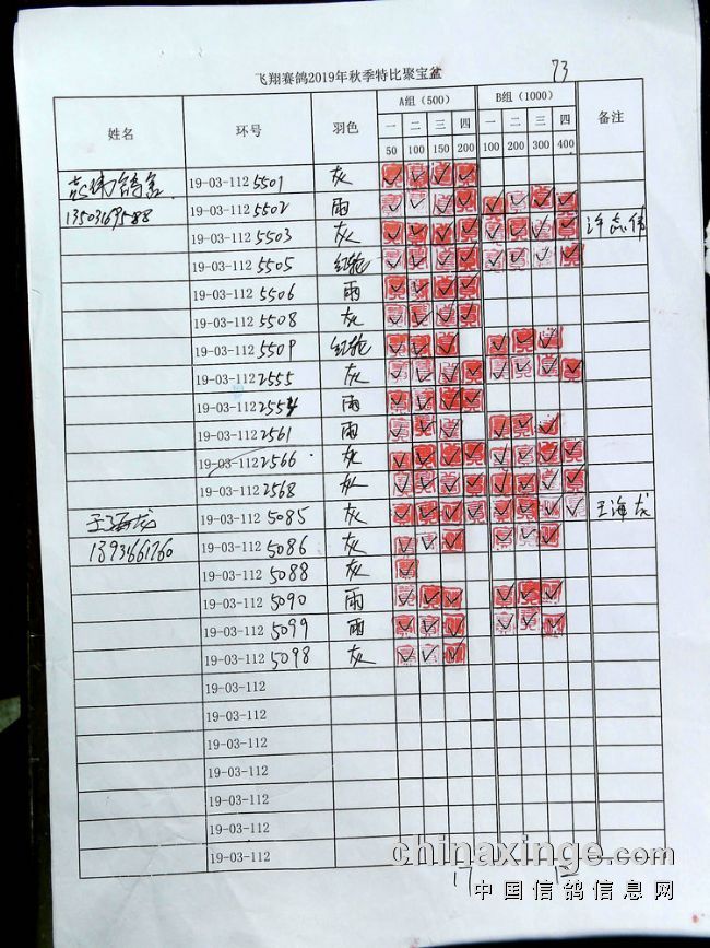 21春飞翔赛鸽俱乐部500公里指定原单(特比)