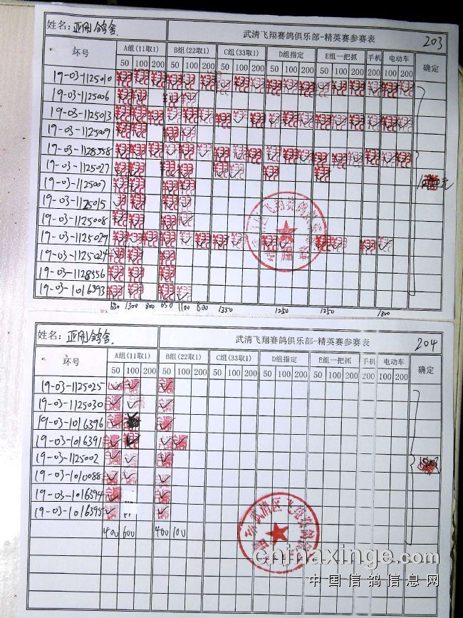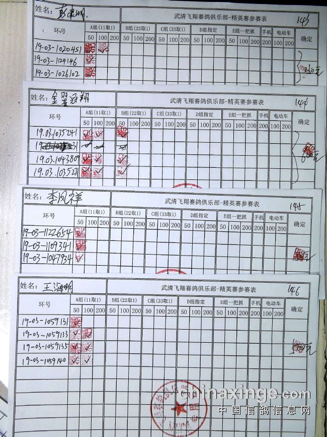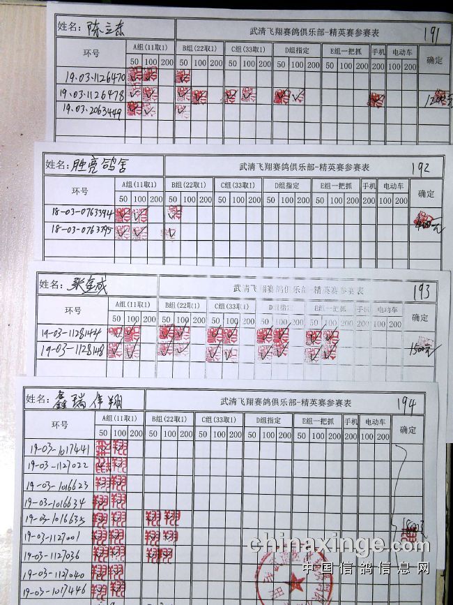 飞翔赛鸽19秋280公里百杯赛-指定原单121-211