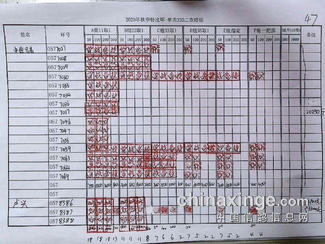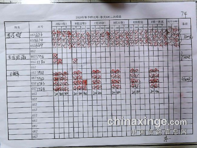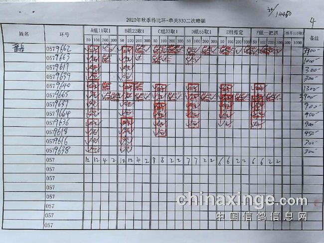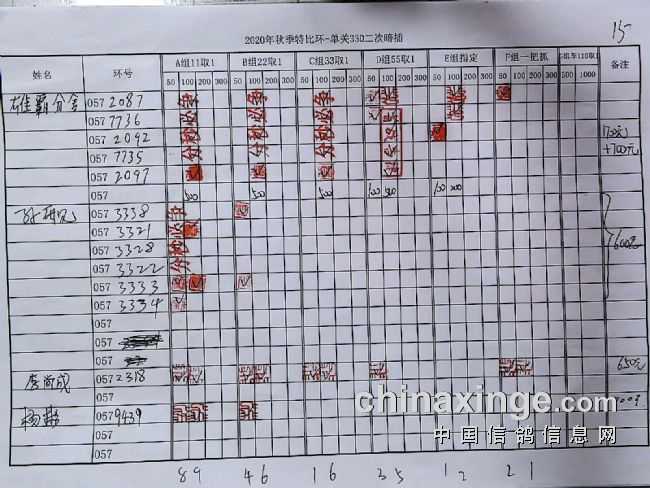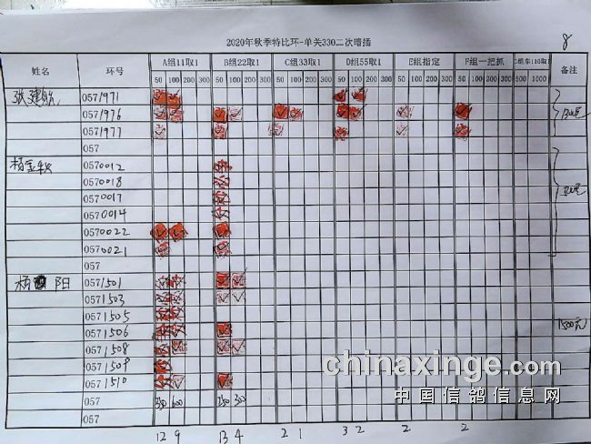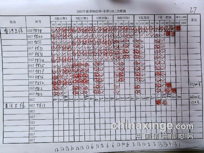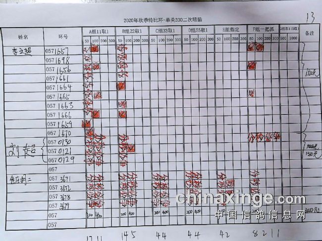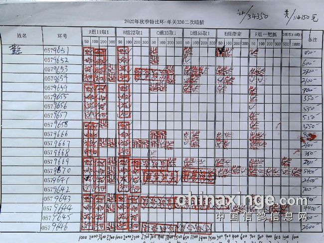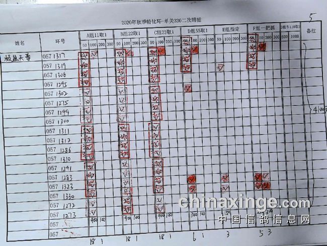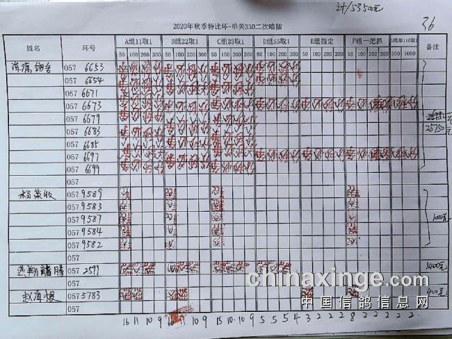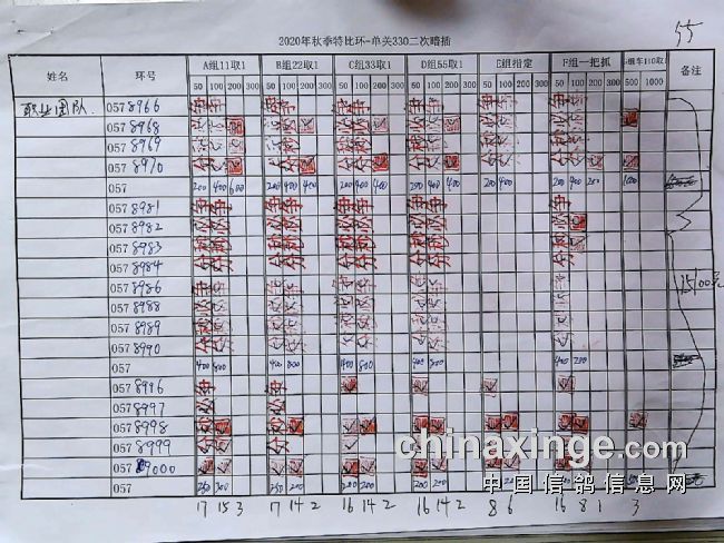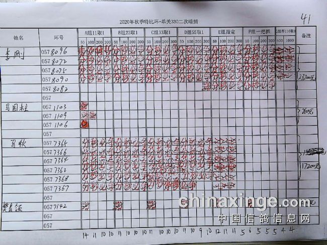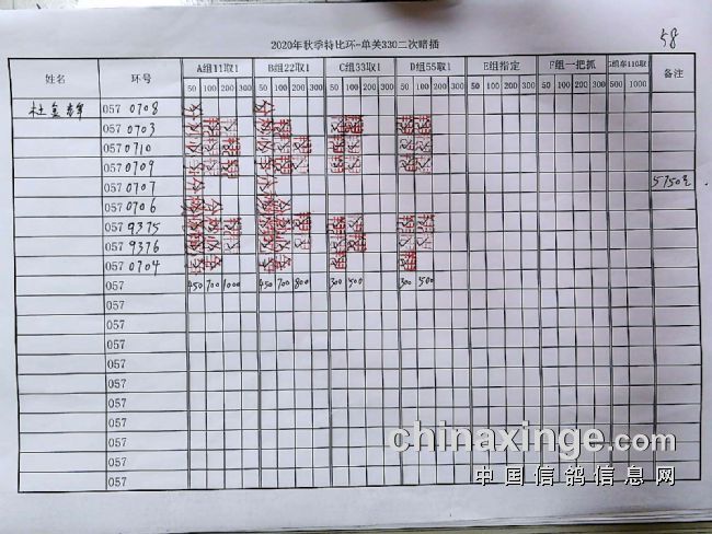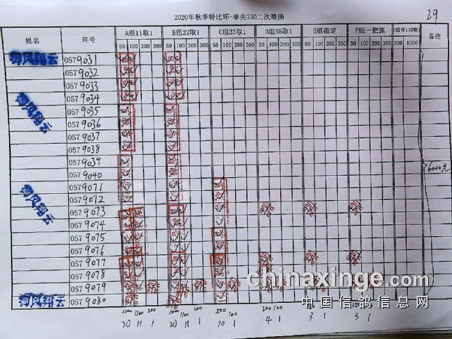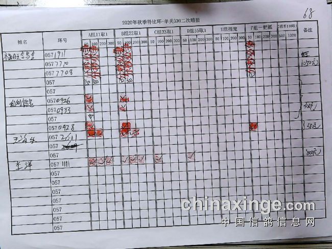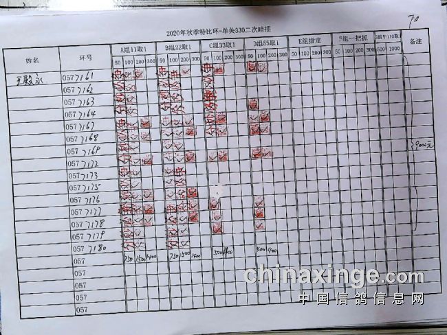 50组:共计388羽,取5名,1名5820,2名3880,3名2910,4名2910,5名1940。