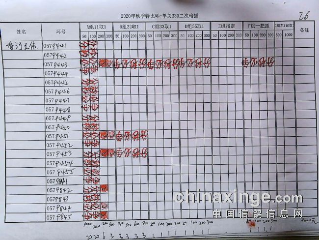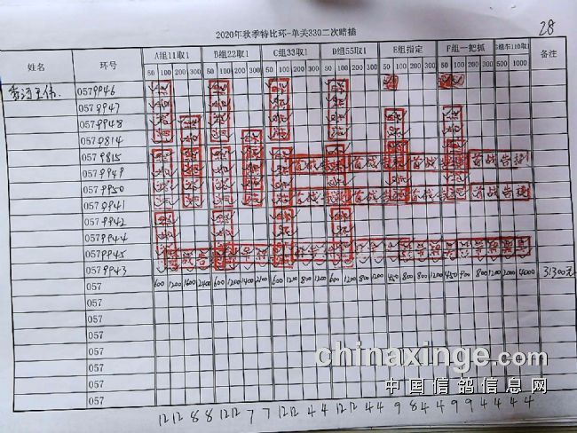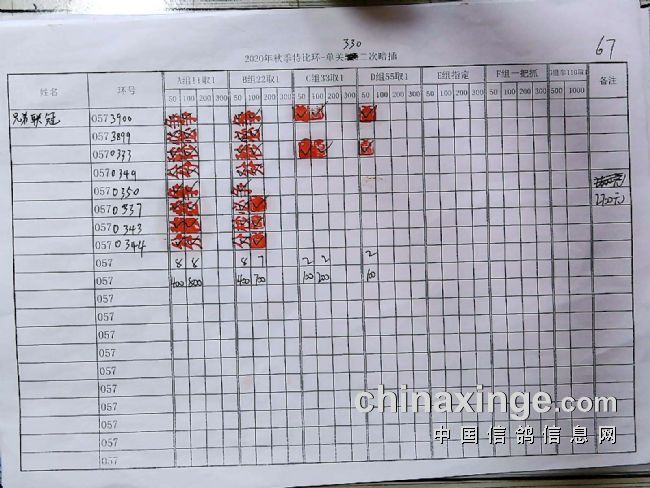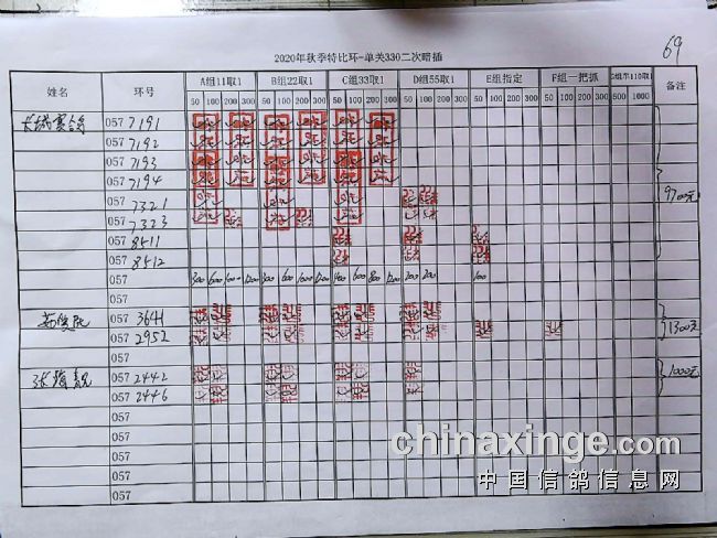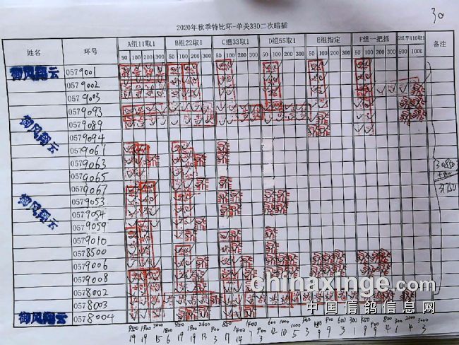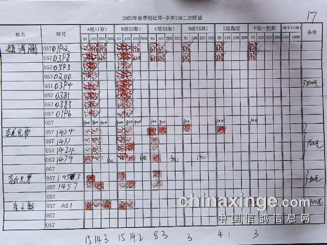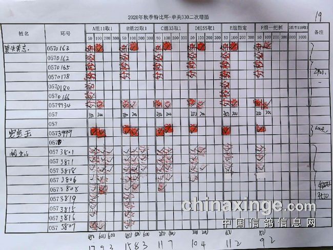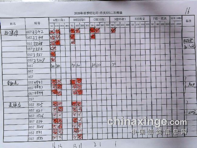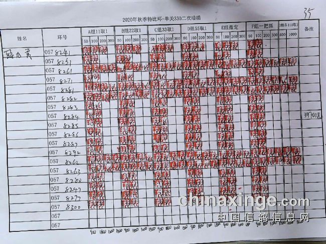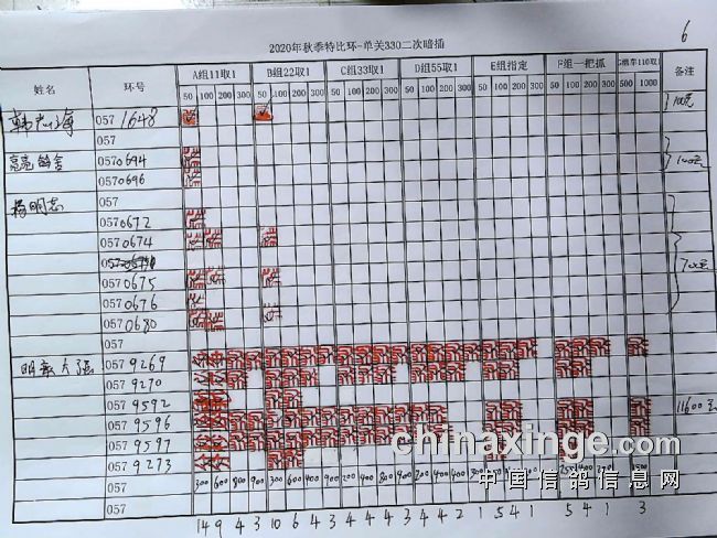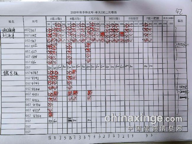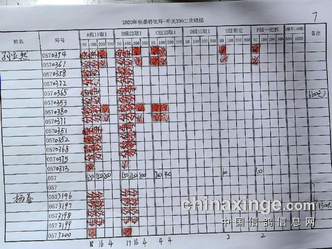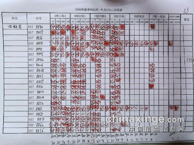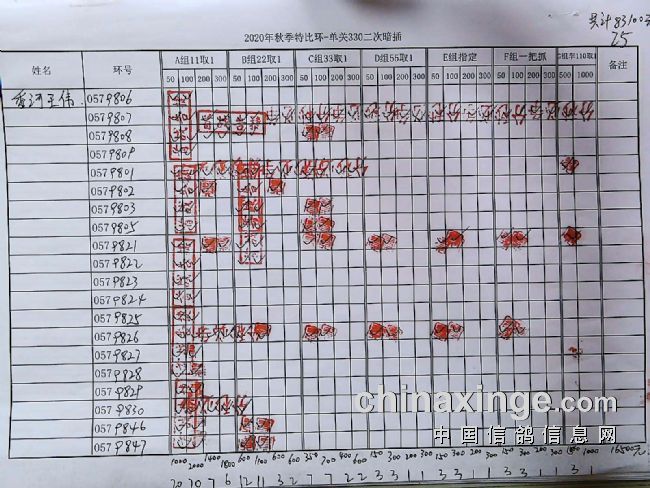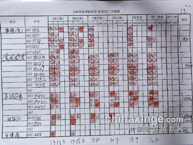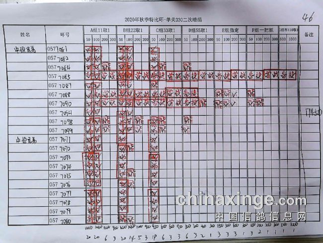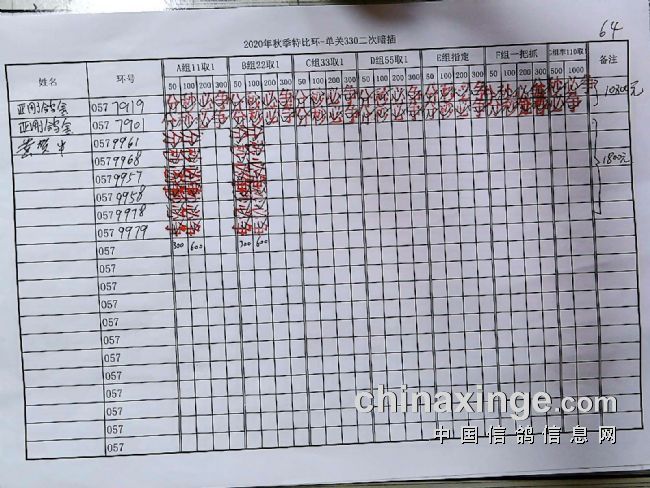 50组:共计388羽,取5名,1名5820,2名3880,3名2910,4名2910,5名1940。