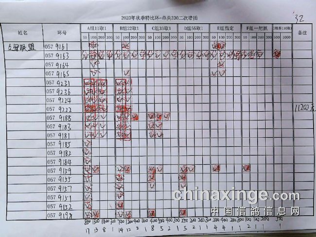200组:共计416羽,取19名,1-18名各4000,第19名3600。