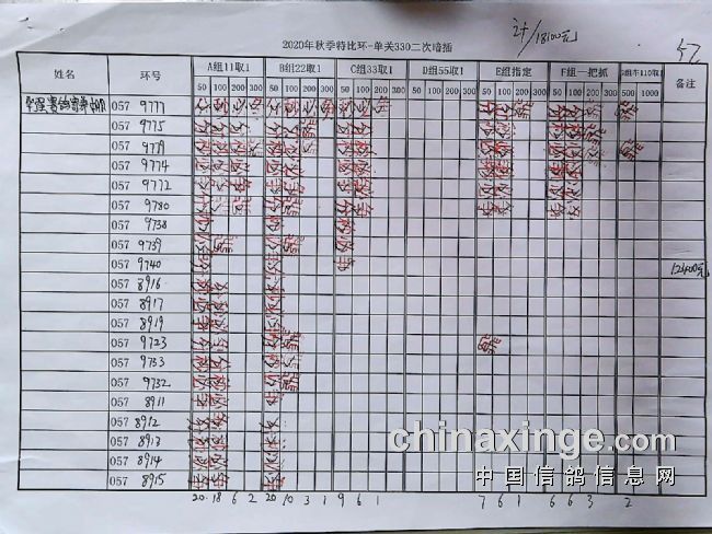 50组:共计677羽,取21名,1-20名各1500,第21名765。