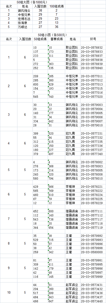 飞翔赛鸽俱乐部20秋505公里第一关-特比团体