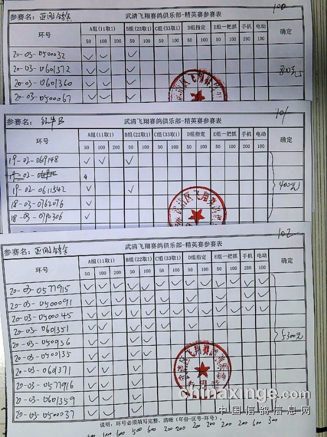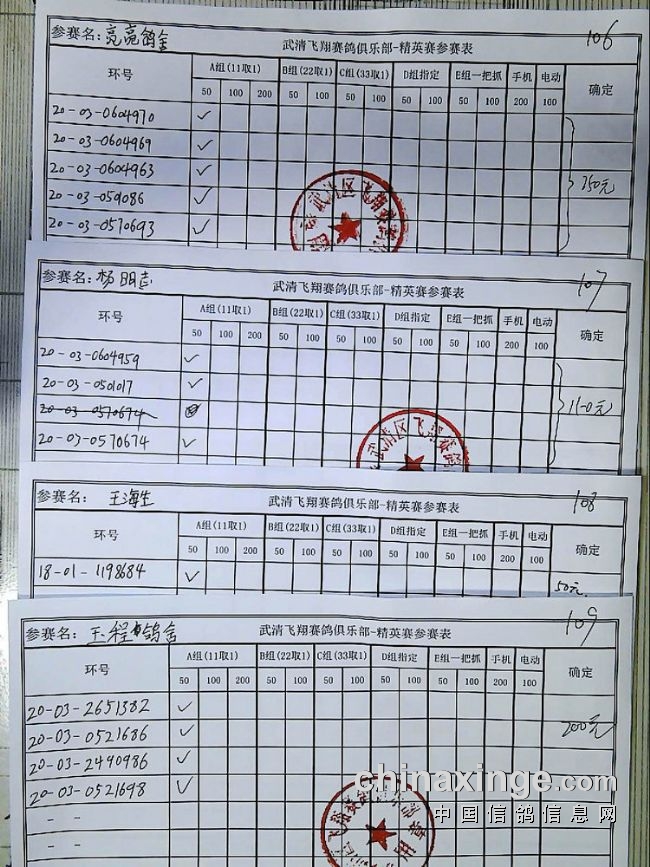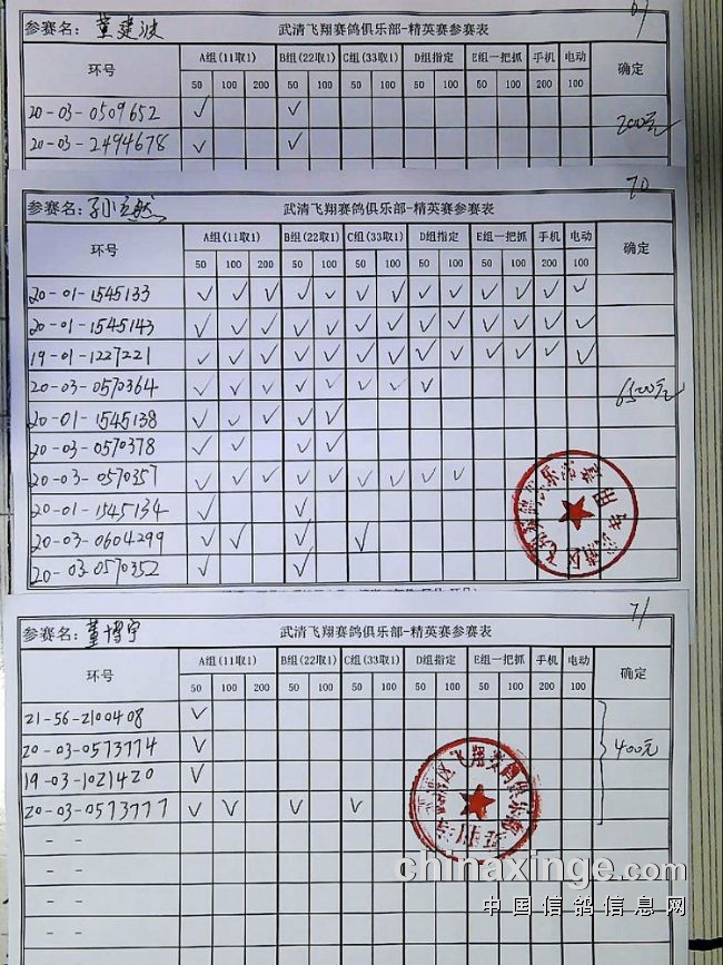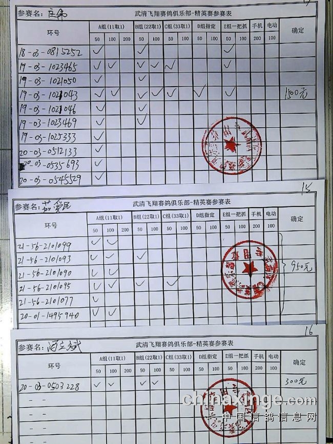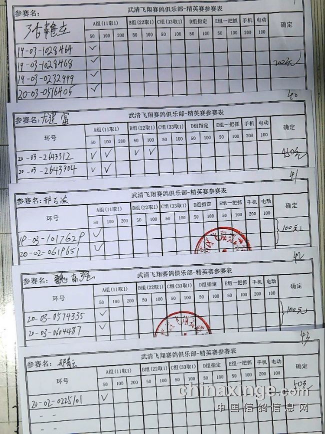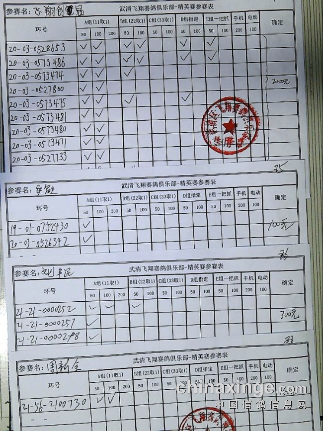 21春飞翔赛鸽俱乐部230公里指定原单、统计