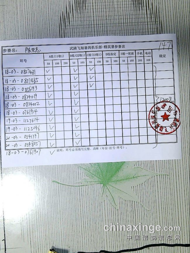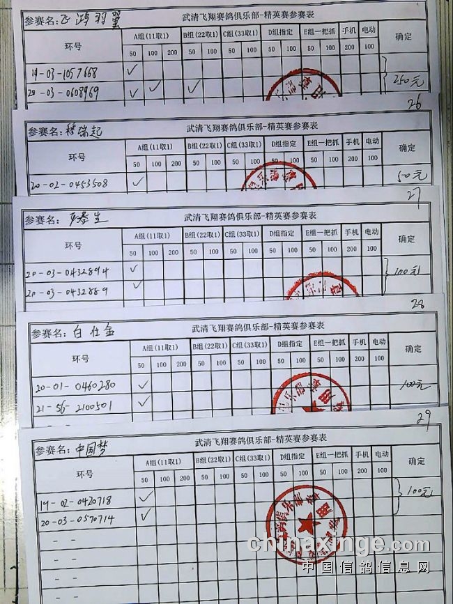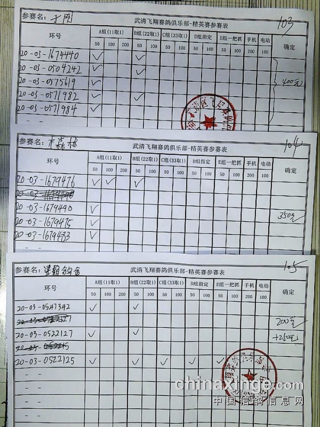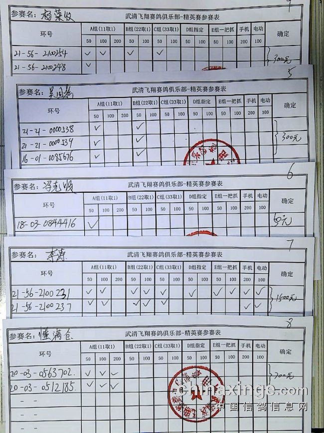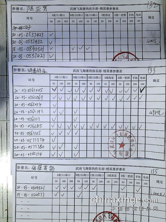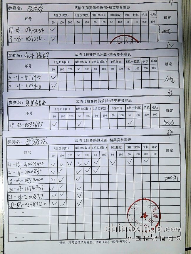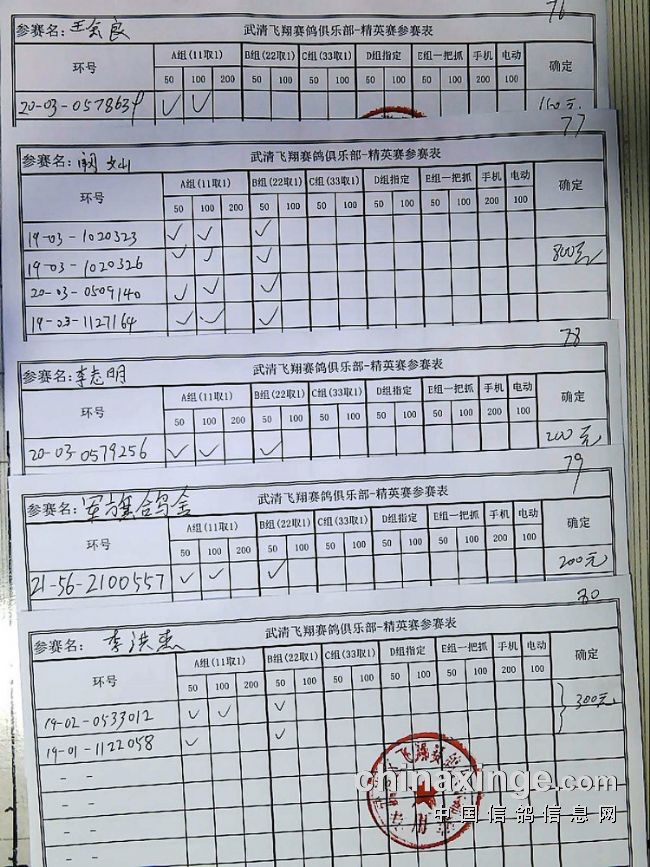21春飞翔赛鸽俱乐部230公里指定原单、统计