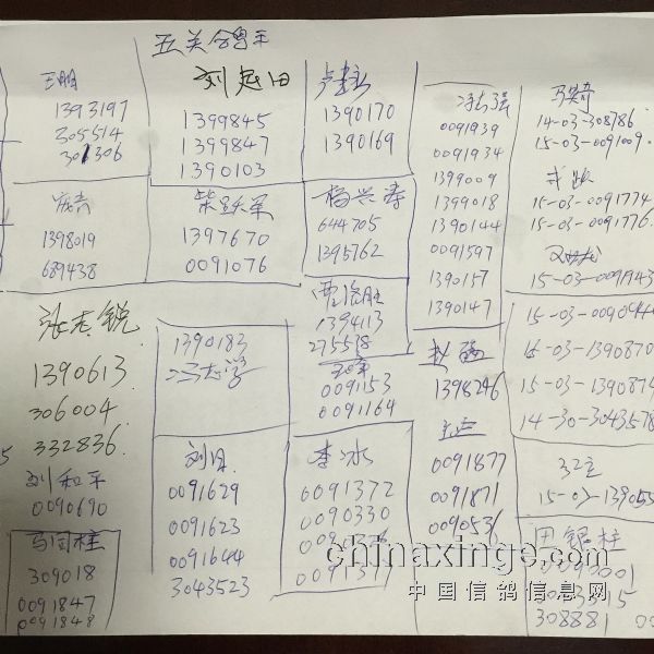 3、五关鸽王挑战赛名单176羽(陈建英34、马光辉16、马会来22羽通指)