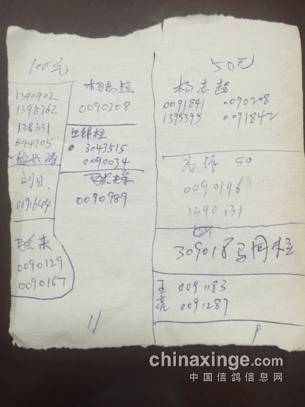 100元组指定鸽11羽,奖金分配:冠军一把抓1000元,鸽会留100元作为冠军奖杯款。
