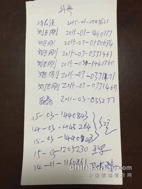 定州市2016年春季第三关李庄赛集鸽快讯