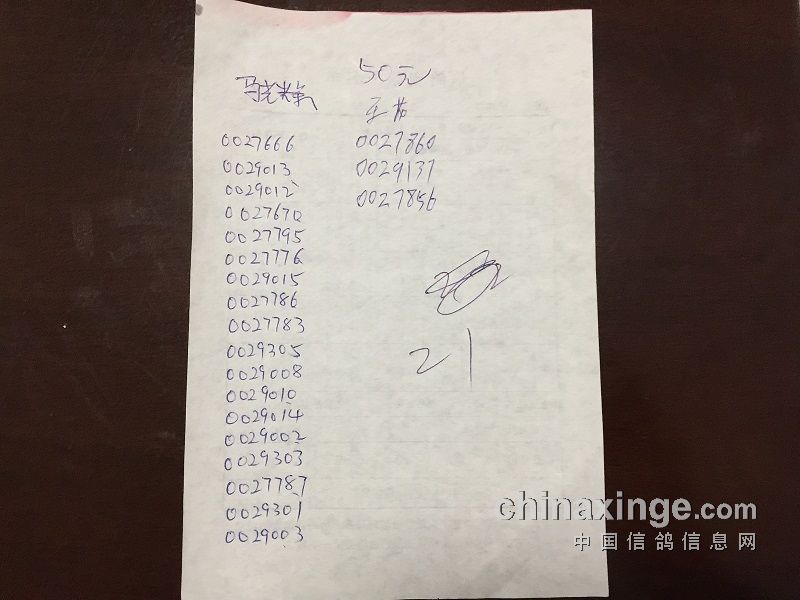 50元组指定鸽名单:274羽