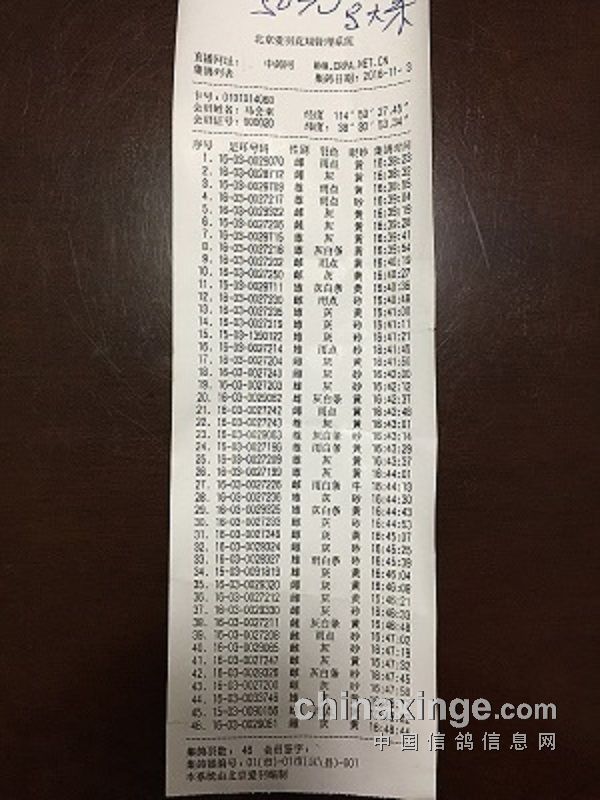 定州市2016年秋季500km平度赛集鸽快讯