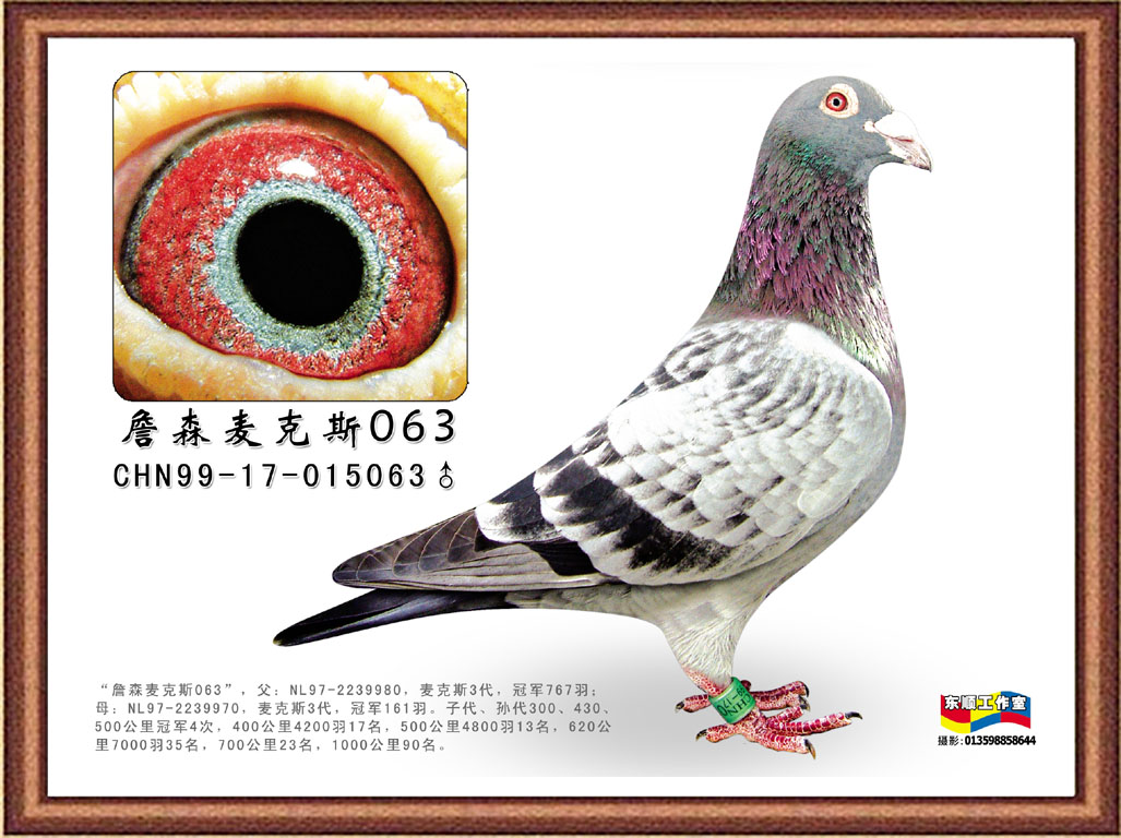三十年赛鸽生涯,使翔公棚常胜稳定鸽系胡本年轻艺术家,溶血性能强劲的詹森麦克斯,快速鸽系红狐731,电脑戈马力,乔斯 佛卡门钻石潘特 贝克汉姆家族,幕利门,芮娜-飞戈家族,波西瓦等血系!获得300-700公里冠军前名次多次!拼搏在赛鸽第一线!致力打造一支稳定兼速度鸽系!QQ空间更多种鸽照片欣赏!电话13593169772.QQ121156114。 微信开通手机同号!