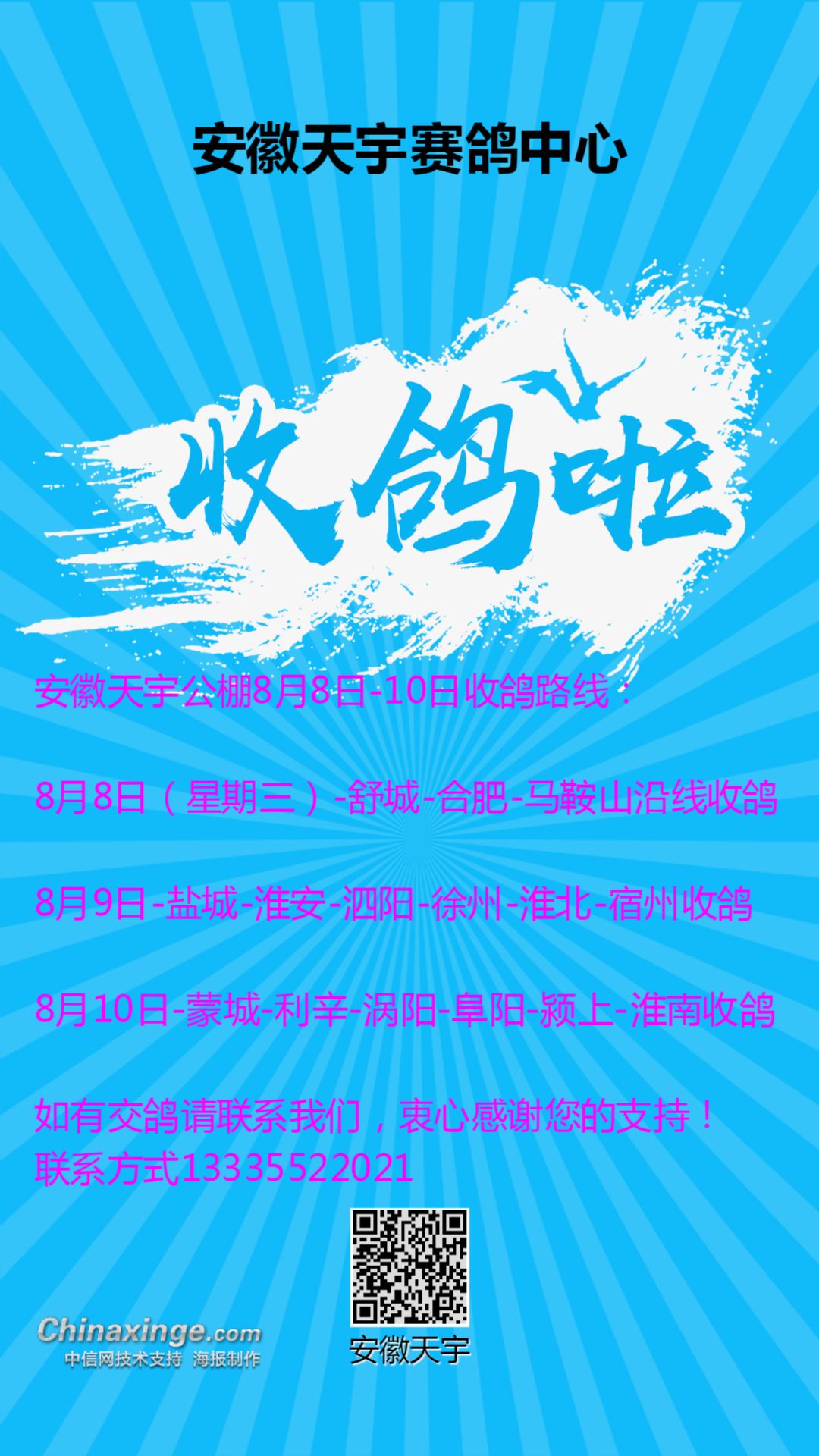 8月29合肥-8月30泗阳-徐州-8月31阜阳淮南收鸽