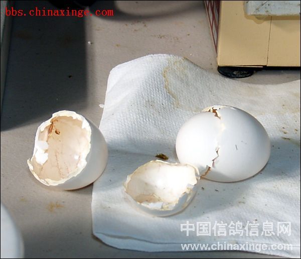 一对保姆鸽的蛋,放入37度恒温箱内后几乎忘记了。完全没有翻动过(一般文献上说鸽蛋需要每天翻动两次以上)。某天突然听见幼鸽的声音,这才想起来放了两只蛋在孵箱中。打开箱门,两只健康的幼鸽出壳了。