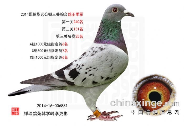 07年轩辕公棚预赛154名决赛198名327名.捷翔公棚决赛199名205名.银河公棚251名.08年(春)北京华东公棚一关取得28名二关取得80名.因决赛地震原因2000多羽赛鸽回来不到10羽...08年(春)郑州中原公棚决赛98名159名283名决赛上笼3只...08年(秋)轩辕公棚决赛90名.188名(白鸽组季军)209名..郑州翔和公棚预赛104名决赛320……