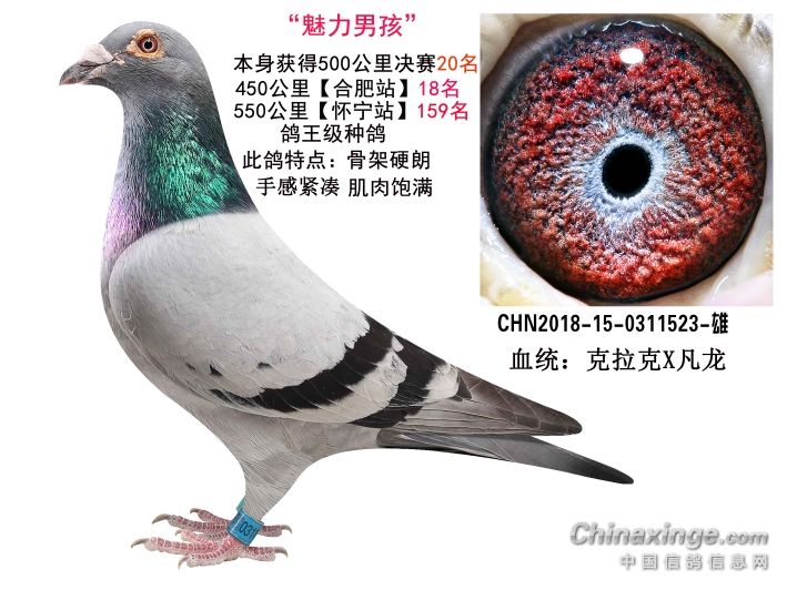 父亲:克拉克X凡龙 多次获奖鸽鸽 母亲:苍白回血 五台山鸽王冠军平辈