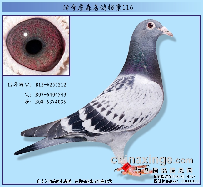 上图是拍卖时提供的图片,当时还是小鸽子,眼砂还没有起来。
