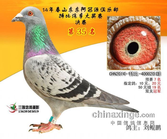 本鸽舍历尽千辛万苦起棚于2012年冬季,本鸽舍在周围来说起棚时间比较晚,用本地名人绰号“小詹森”的成绩鸽赛级鸽为起点,基础种鸽是壹零年500公里冠军鸽和300公里冠军鸽/500公里亚军及其父母鸽以及子妹鸽在内的阵容,其中融入了“廊坊友祥鸽业”王成建先生东方不败直血,在首年春季首场比赛中(300公里)用两羽赛鸽参赛,在两千多羽的竞争情况下赛鸽2012-15-347998获得了13名,秋季300公里347718获得第4名,362264获20名,指定鸽12,500公里31、40名,550公里362270获得第11名指定鸽第8,14年春两次300公里赛鸽“阿拉伯骏马”588841分别获得33名,9名,指定鸽双组冠军、同母异父兄弟鸽26名,不到五月龄的特比环小将“至尊宝”400020预赛第7,决赛35名,双关鸽王冠军!500公里第三场59名,一四年秋俱乐部300公里集鸽二千六百多羽,在当天归巢466羽的情况下本鸽舍第一羽赛鸽获得了第58名,当天协会组织的500公里比赛,本鸽舍为和鸽友打赌,只送一羽赛鸽参加比赛,当天顶风共归巢48羽,爱将获得第9名,指定:10元组第三、20元组第二 完胜对手。鲲鹏蓝霸鸽舍原交天下鸽友QQ;2357960575
