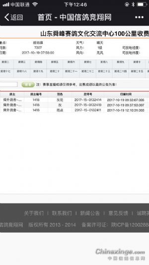 鸽舍赛绩