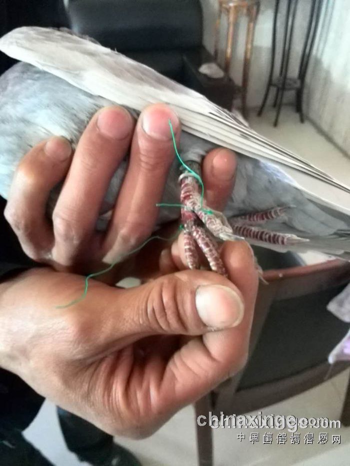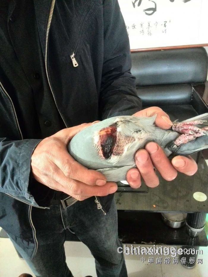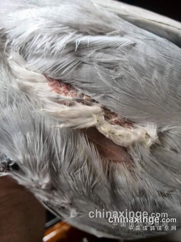 “中国好鸽子”二次80公里训放于4月5日进行,鸽子走势良好,但归巢情况不理想,至天黑丢失近百羽赛鸽,晚上查棚检查发现一趴卧的绛鸽,很是痛苦。经查询环号为:2015-03-1267387,鸽主《治辉小江》名下赛鸽,此赛鸽腿部、胸部均受伤严重,血迹与一段捕鸟网线凝固一体,它冲破大网顽强归巢,令人感动!