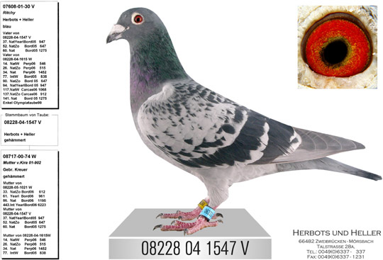 大唐鸽舍始建于2006年,座落美丽的青城呼和浩特,鸽舍现有种鸽30羽,主要血统:甘纳斯原棚(黄金种雄千禧年号直女,在荷兰已做出多羽大羽数成绩鸽)、詹森、贺伯特*贺勒、幕利门。2006年引进了贺伯特*贺勒8228-04-1547 (05年波尔多国家赛一岁鸽组60位,共得过37、52、60、97、166、202、515、789名)Ritchy之子, (父 : 07608-01-30 Ritc……