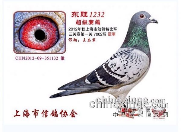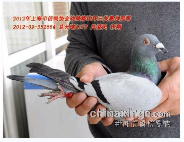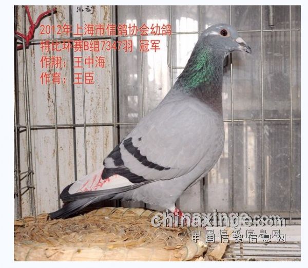 12、2012年上海市幼鸽特比环B组7347羽冠军(来源:上海赛鸽网)
