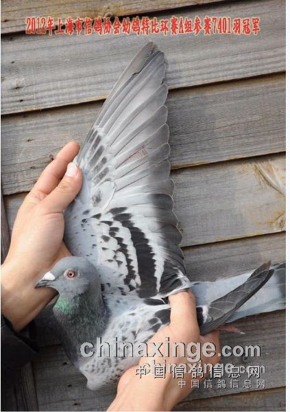 13、2012年上海市幼鸽特比环A组7401羽冠军(来源:上海赛鸽网)