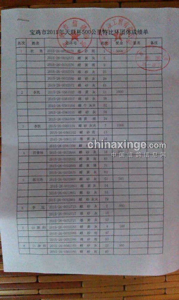 宝鸡市信鸽协会2018年秋季300公里比赛成绩(韩