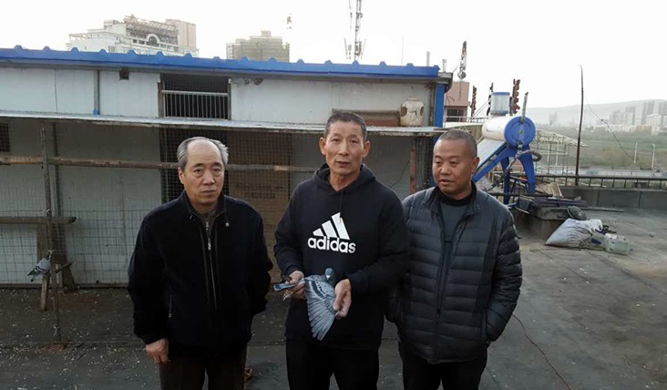 冠军获得者;齐德新 赛鸽足环;2016-26-0121334 获奖鸽主与裁判员合影