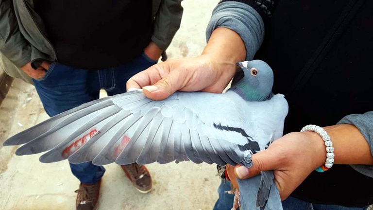 季军获得者;完璧归赵 赛鸽足环;2016-26-0130387 获奖鸽主与裁判员合影