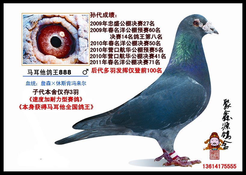 本鸽舍建立于2004年,鸽舍种鸽80羽,主要血统有:詹森;修斯肯;彼得米卫;万侯;瓦特;岩田系;钻石王老五。愿与各地鸽友共同学习交流。 联系电话:13841773333;13614175555 QQ944818872 本舍2009.2010.2011.2012获得地方赛300.400.500.……