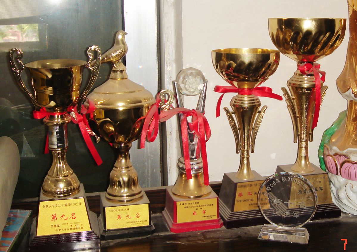 本人于2005年初开始养鸽.感谢唐礼杰和王伟刚鸽援的支持.使我在06--07年获得较好的成绩.本鸽舍系有;詹森.冬日男孩.电脑.戈马利.林伯格.村松白.佛尔布文.凡布丽按娜.胡本.贺伯特.彼得米卫.红狐730.等.....