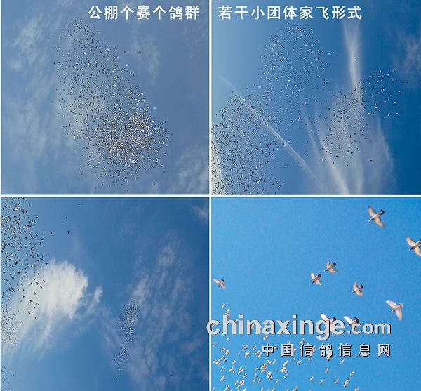 公棚体重超标及体质虚弱的鸽子(除去先天体质弱的鸽子),懒飞、倦飞,飞不快、飞不远。用个赛个之后,同样无需强制家飞,同样20天后一次性家飞持续时间从20分钟提到2小时以上。家飞时出棚的鸽子会逐渐形成若干小团体鸽群形式长时间家飞,不是那种三、两个大群短时间飞一会就有许多鸽子落下来的形式。小团体家飞形式是公棚高水平家飞表现。
