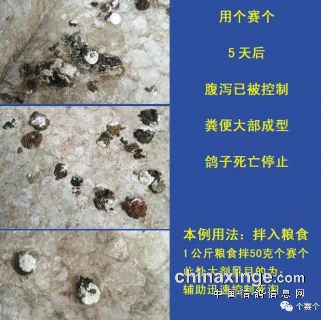 廊坊鸽友,2017年5月24日给小鸽子注射疫苗,之后出现水便,用个赛个消除水便,1公斤粮食拌20克。