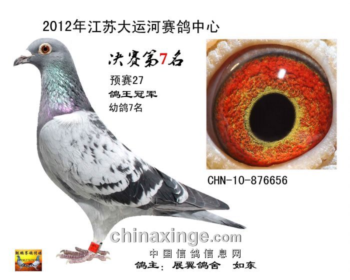 热烈祝贺本舍获得2012年秋江苏大运河公棚鸽王冠军。(预赛27名,决赛7名)