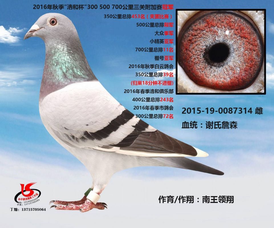 从上世纪90年代初便开始饲养信鸽,主要以詹森、阿里维什等多路血系育种参赛,依赖多年信鸽饲养经验,尝试作育和培育一路胜任多关赛和公棚耐粗饲、抗病性强的实战型鸽系。 期待与热爱信鸽竞技、育种的鸽友,一起交流学习,共同成长!快手:广州-南王领翔 微信:helloworld2019