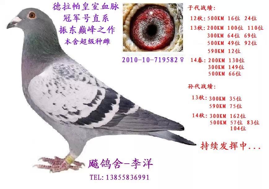 飚鸽舍位于阜阳市老城区南护城河畔奎星楼(三层塔)南侧,市委市政府北门口!鸽舍位于七楼楼顶面!鸽舍面积近80平方,鸽舍全钢架彩钢夹芯板结构,坐北向南,有种鸽笼和赛鸽笼及幼鸽笼五个鸽棚!同时可容纳赛鸽三百余只!本舍主血:以德拉帕为主、詹森及汉斯威利里奇为辅。欢迎广大鸽友莅临指导,愿与你分享夺冠时的快乐!……