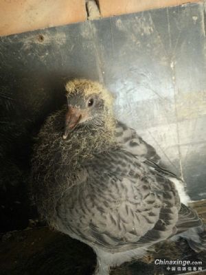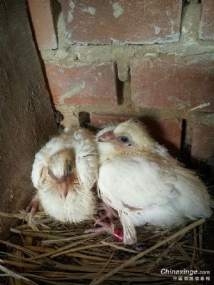 出它同窝晚出壳一天。嗑的了。自己跑出窝被别的大鸽子叨的。