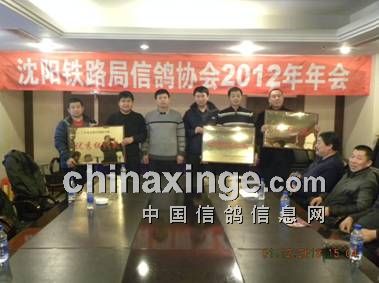 沈阳铁路局信鸽协会2012年,年会于2013年1月12日在沈阳沈铁大厦召开。各协会代表分别来自沈阳、吉林、长春、三海关、绥中、锦州、阜新、抚顺、苏家屯、新民、朝阳等。参加本次年会的领导有沈阳铁路局体协秘书长胡晓松体协指导李晨,会议由鸽协常务副秘书长吴万福主持。
