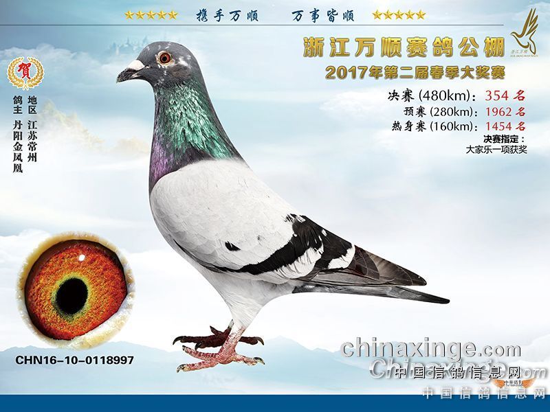 祝贺丹阳金凤凰获得浙江万顺赛鸽中心决赛354名
