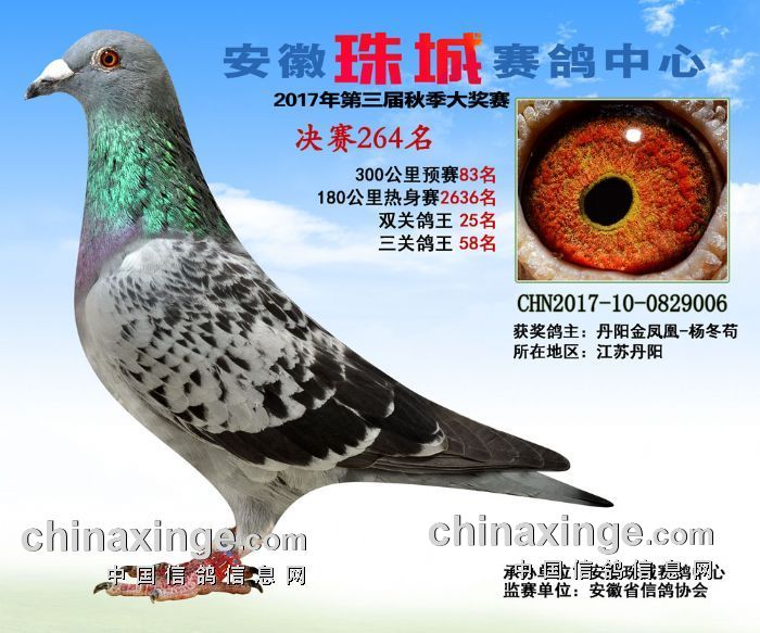 祝贺丹阳金凤凰获得安徽珠城赛鸽中心决赛264名
