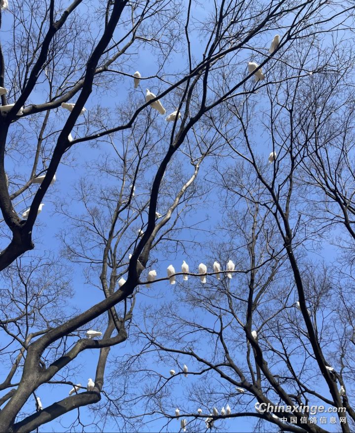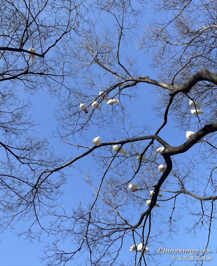 绿荫下的静谧时光:训练累了,小鸽子站在树梢小憩