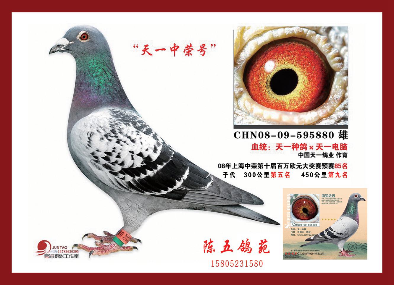 2003年奥林公棚35名2004年新欧亚公棚17名,83名2005年奥林公棚57名2006年奥林公棚增26名2006年奥林公棚87名,161名2009年洪泽湖公棚268名,321名2012年秋季特比环第5名,综合8000多羽12名。 聚宝盆总奖金三万八千元2012年秋季特比环第118名,综合8000多羽2……