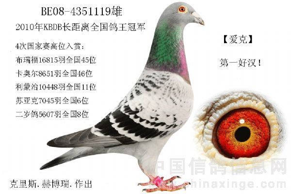赫伯瑞.克里斯(Chris Hebberecht)鸽舍位于东法兰德省,贺伯瑞赛鸽家族从他的祖父及父亲开始就非常的热衷于赛鸽;贺伯瑞鸽系基础开始于II次世界大战时期,由他的父亲(Octaaf. Hebberecht) 奥特福.贺伯瑞所建立,于1999年奥特福去逝后 ,则由克里斯加以发扬延伸。他在长距及超长距的比赛中创造许多的奇迹,包含2005年超长距全国鸽王冠军,省赛方面在过去的8年中就有9次的冠军,克里斯除了自己以外他的两个儿子Tom汤姆及Bart巴特及太太卡西(Kathy)都是他赛鸽的好帮手。